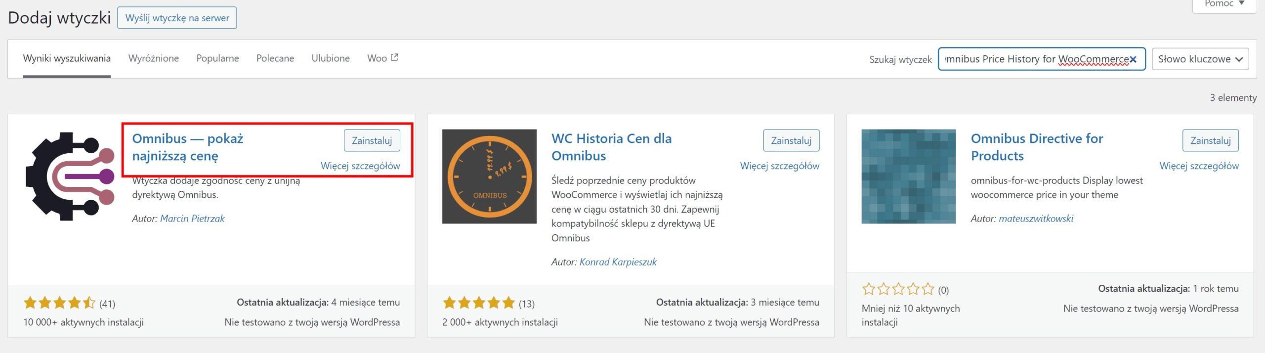 Zaloguj się do panelu administracyjnego WordPress, przejdź do sekcji „Wtyczki” i wybierz „Dodaj nową”. Wyszukaj wtyczkę „Omnibus Price History for WooCommerce” i kliknij „Zainstaluj teraz”. Po zakończeniu instalacji, aktywuj wtyczkę.