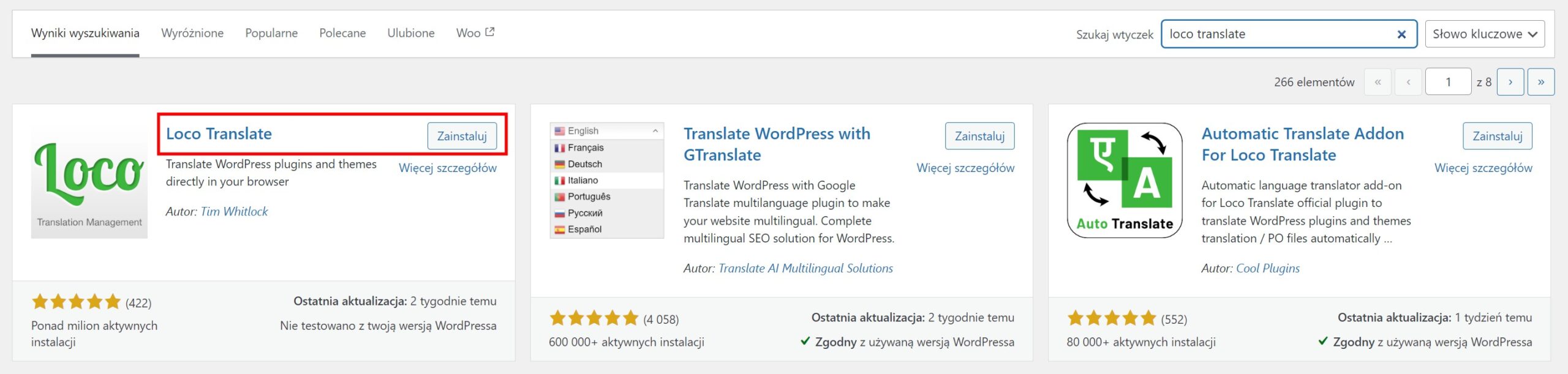 - Przejdź do Wtyczki -> Dodaj nową i wyszukaj „Loco Translate”.