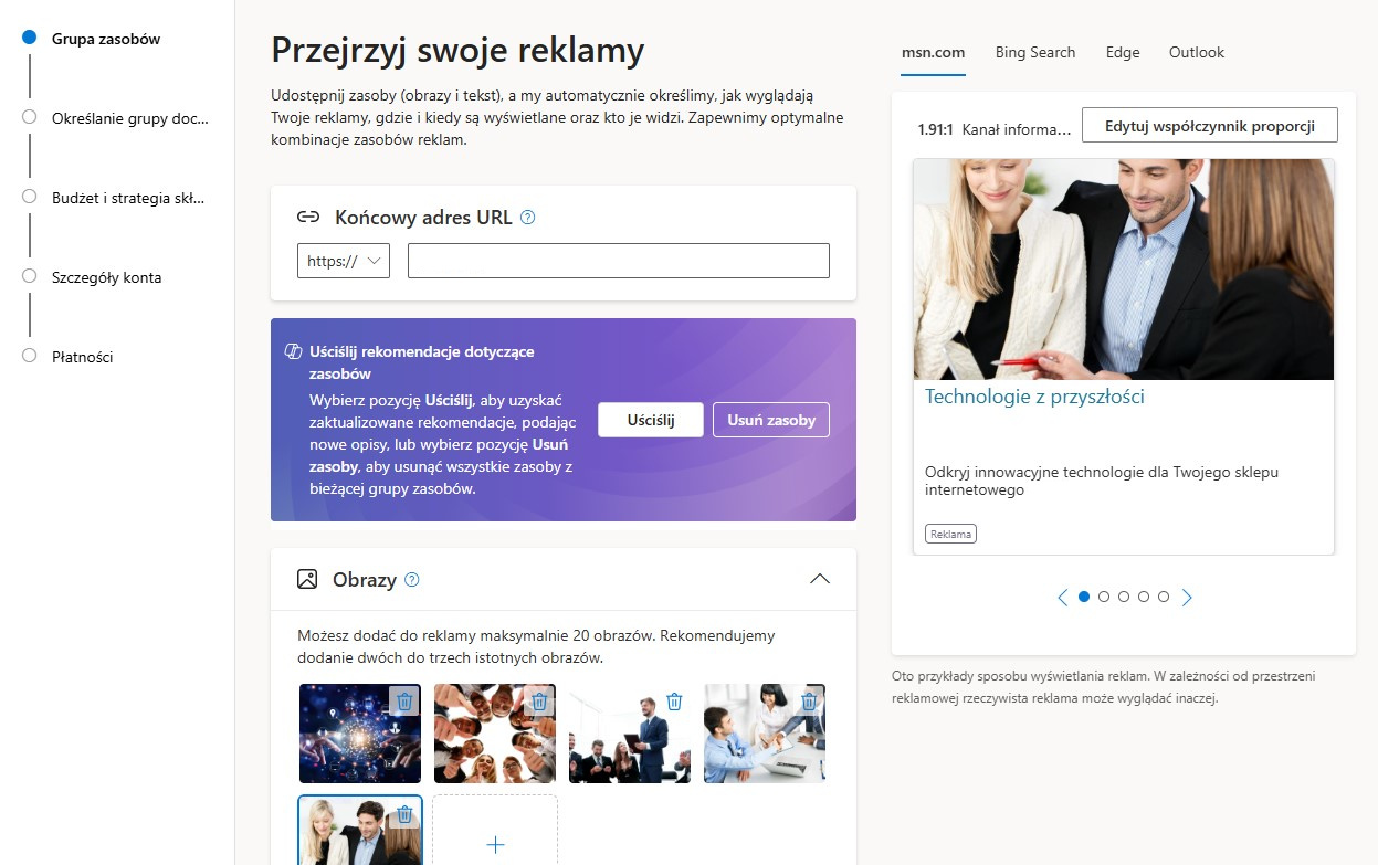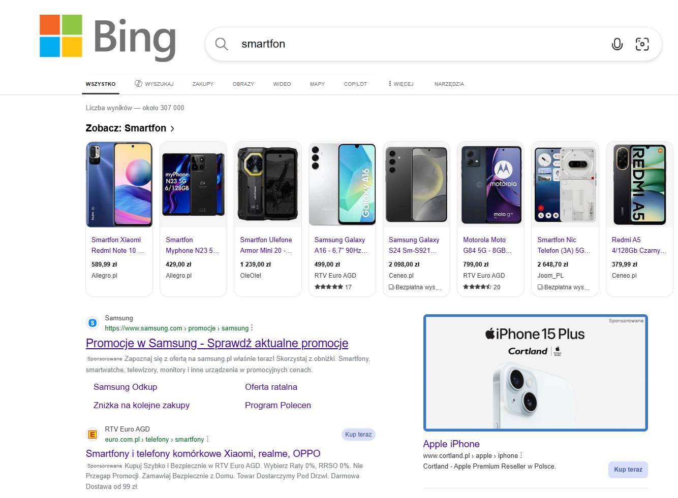Kampanie Microsoft Ads reklama bing dla strony sklepu internetowego