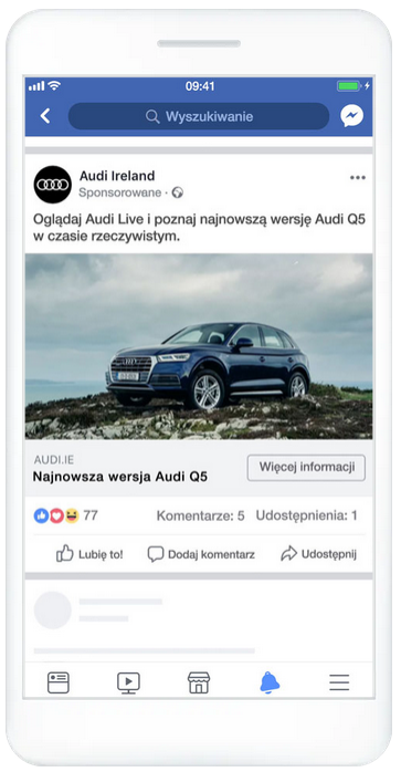 Reklamy na Facebooku kierują użytkowników bezpośrednio na stronę sklepu, dzięki czemu zwiększasz ruch w kluczowych miejscach, np. na stronie produktu czy zakładce z ofertą.