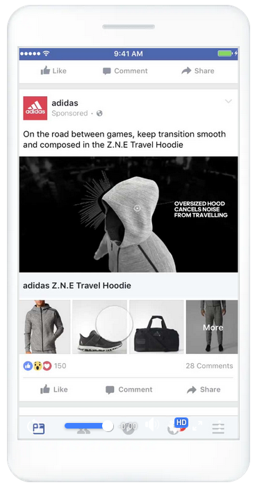 Reklama kolekcji łączy obraz lub wideo główne z zestawem produktów prezentowanych w siatce. Umożliwia użytkownikom szybkie przeglądanie i zakup produktów bezpośrednio w reklamie, co jest szczególnie skuteczne na urządzeniach mobilnych. Ten format łączy atrakcyjnie wizualny format z funkcjonalnością zakupową, pozwalając odbiorcom poznawać ofertę marki w sposób interaktywny i wygodny.