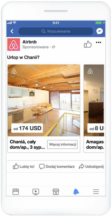 Karuzela produktowa pozwala wyeksponować kilka produktów lub usług w jednej reklamie, każdy z własnym obrazem, tekstem i linkiem. Użytkownik może przeglądać ofertę, co zwiększa szansę na interakcję i zainteresowanie poszczególnymi elementami kampanii. Ten format jest idealny do pokazania szerokiego asortymentu, przedstawienia wariantów produktu oraz skierowania odbiorcy do konkretnych podstron sklepu lub kategorii.