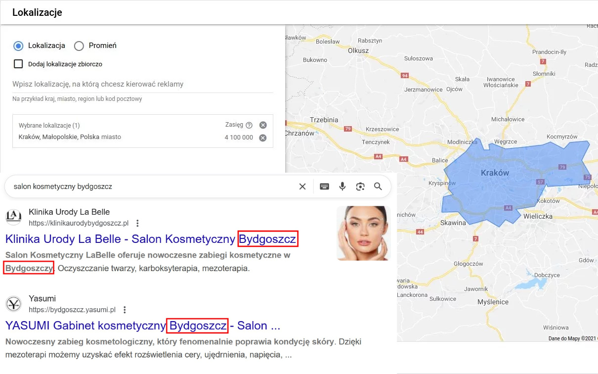 Kierowanie reklam na konkretne lokalizacje: województwo, miasto, obszar